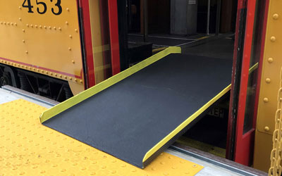 The Memphis Area Transit Authority (MATA) deploys new carbon fiber service ramps on its rail trolley cars using an extremely durable, lighter weight material traditionally used to reinforce concrete buildings and bridges. More than 60% lighter and three times stronger than metal ramps, the new composite ramps bridge the gap between the rail trolley and station boarding platform area, and are easily lifted and put into place by trolley operators.