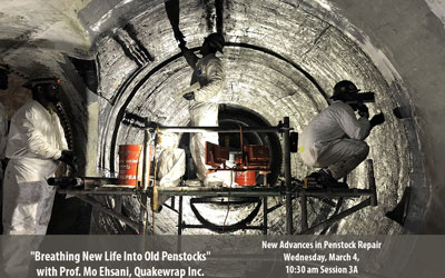 QuakeWrap President/CEO Prof. Mo Ehsani presents the latest repair techniques for steel and concrete large penstock at CEATI Hydopower 2020 in Palm Springs on Wednesday morning at 10:30 a.m.